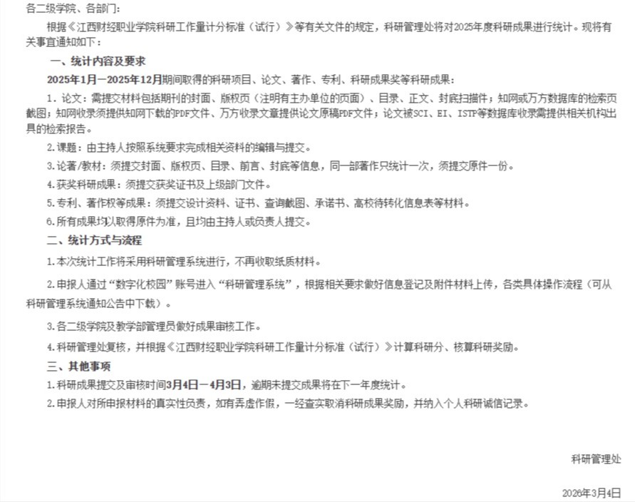 关于做好2025年科研成果统计工作的通知