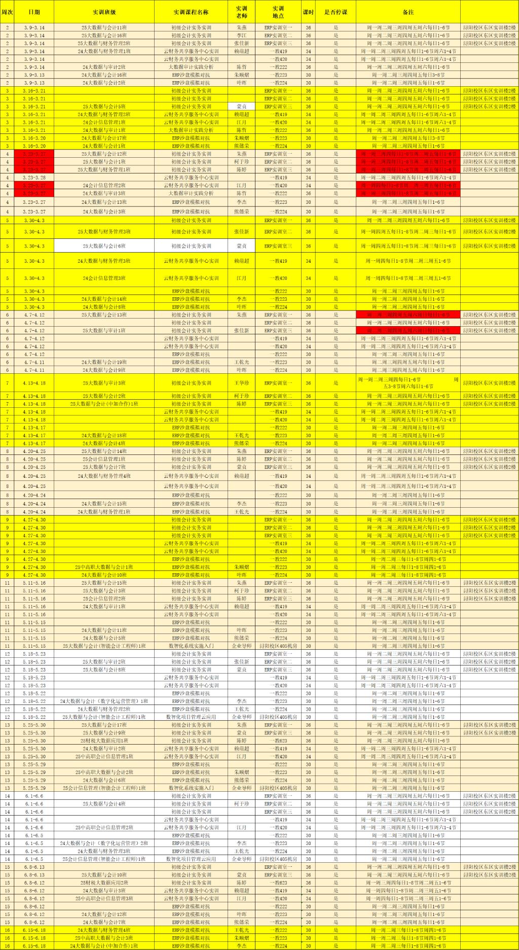 2025-2026-2实训安排汇总表