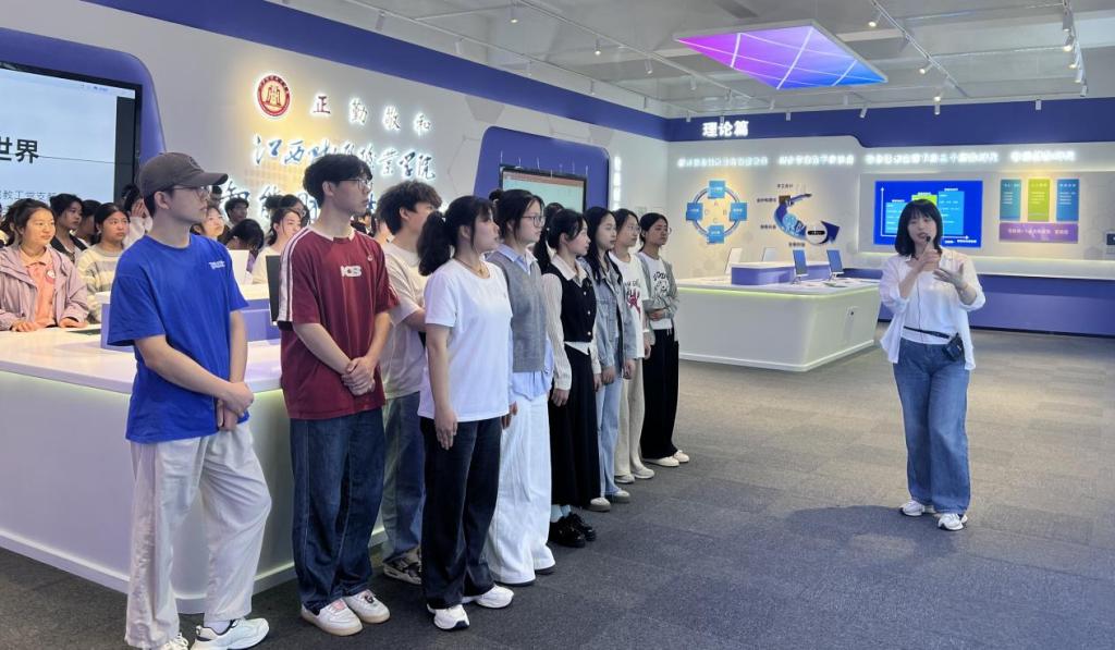 为适应智能财务时代对会计行业变革的需求,拓宽学生专业视野,培养新时代下具备智能财务素养的复合型人才,4月17日,会计学院党员教师赵琪于智能财务体验中心开展了主题为《走进智能财务新世界》的认知课程,会计学院副院长齐洁、实习实训中心全体党员教师、优秀党团员学生、会计学社成员参与。