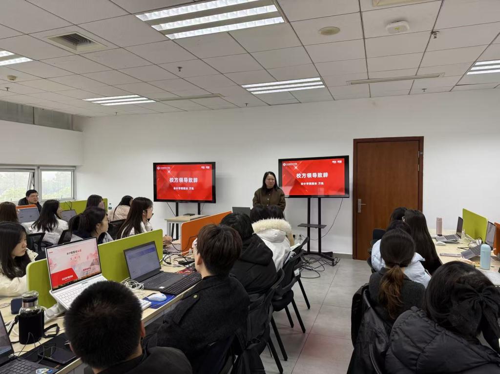 开班仪式上,会计学院院长万凯代表院方致辞,她表示,智能会计现场工程师学院是学院紧扣财会行业数智化变革、深耕产教协同育人的重要平台。学院将紧扣行业发展需求,厚植工匠精神,锤炼学员数智技能,助力学员夯实专业根基、提升综合素养,成长为适配产业发展的复合型技术技能人才。