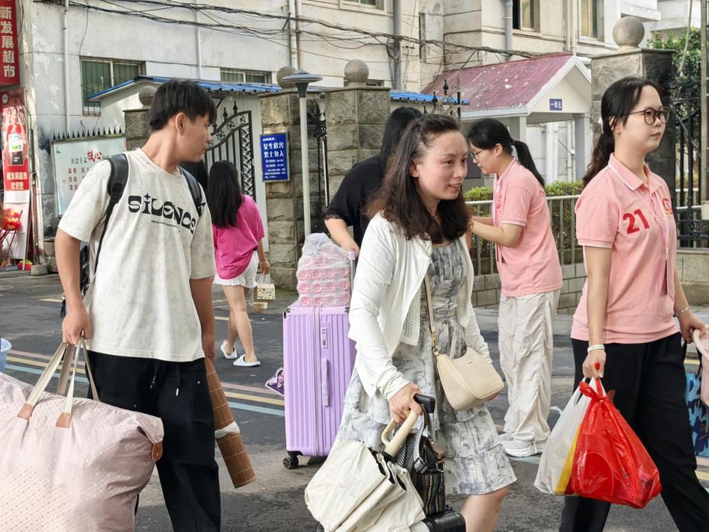 会计学院党总支注重细节与服务实效,不仅设立了固定的迎新服务站,还安排了流动志愿者进行巡视。从校门口到报到点,随处可见志愿者们忙碌的身影。他们身着统一服装,热情主动地迎上前,为新生提供“引导路线—扫码报到—核验身份—宿舍安排”等一站式的服务,确保报到流程的顺畅无阻,高效完成新生入学报到工作。