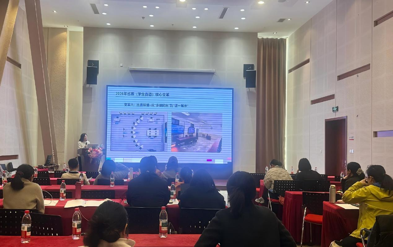 3月15日,作为“全省党建工作样板支部”建设系列活动之一,会计学院教工党支部宣传委员齐洁受邀为江西省财经类高职院校骨干教师开展专题培训,围绕2026年江西省职业院校技能大赛(学生赛道)备赛策略进行深入交流。来自全省多所高职院校的近百名骨干教师参加培训。